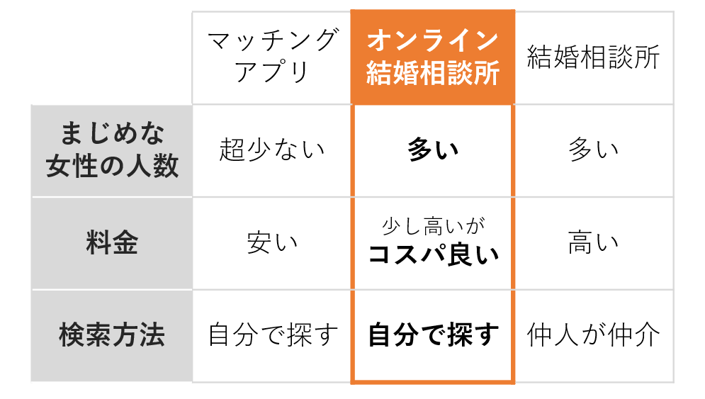 オンライン結婚相談所の出会いを、マッチングアプリや知り合いの紹介と言う人はかなり多い