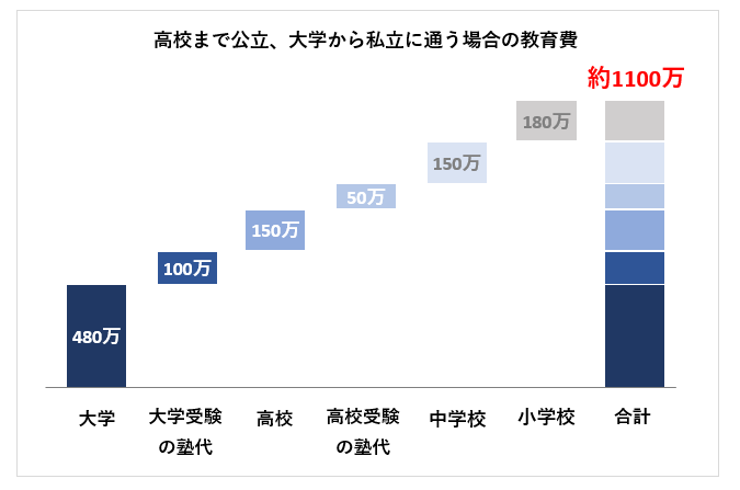 大学から私立に行く場合の教育費は、