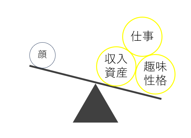 ②顔ではなく、趣味や価値観、収入や資産などの金銭面、職業(公務員・IT会社員)で戦える